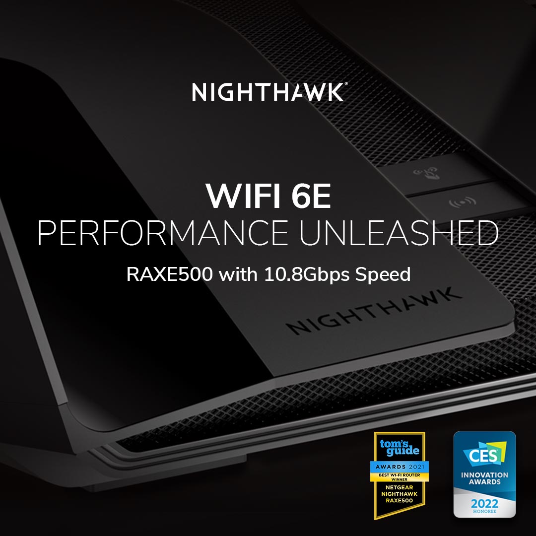 - Nighthawk® AXE11000 Tri-Band WiFi 6E Router (RAXE500)