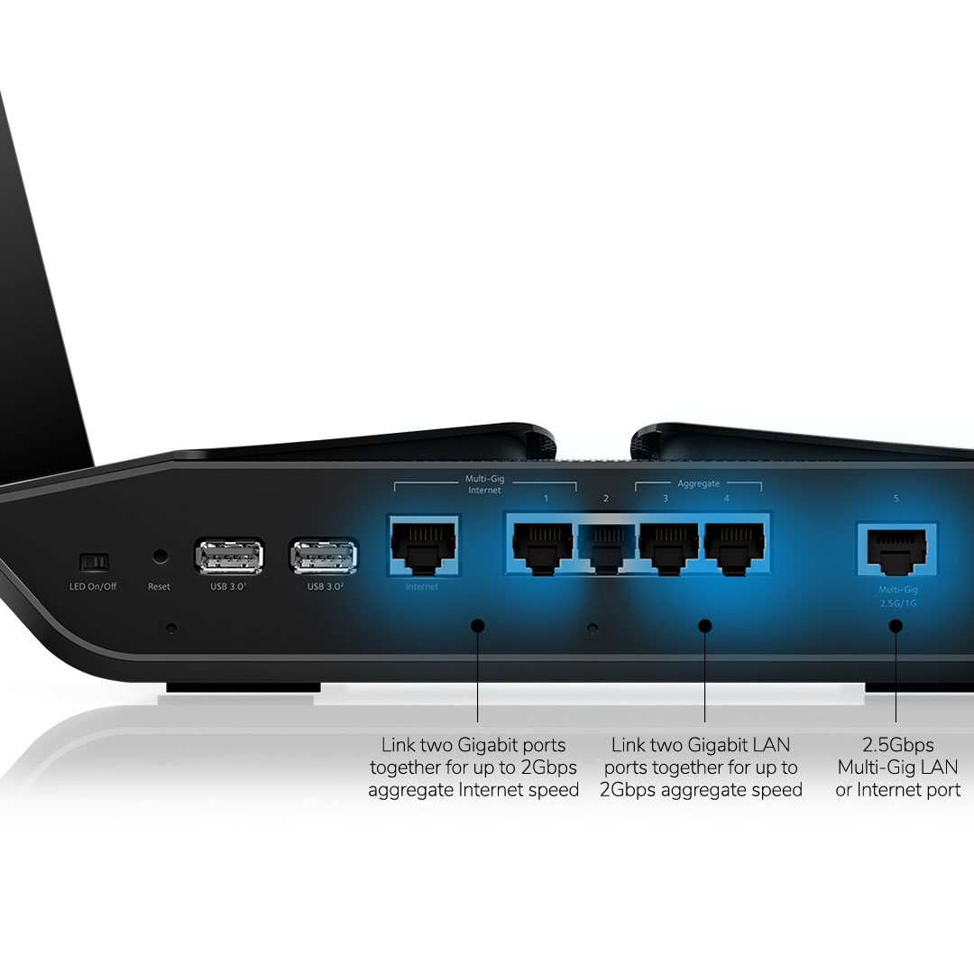 Use the 2.5G Ethernet port or 2Gbps link aggregation to send Gigabit+ speeds to your most demanding devices, and plug even more wired devices into the four additional Gigabit Ethernet ports