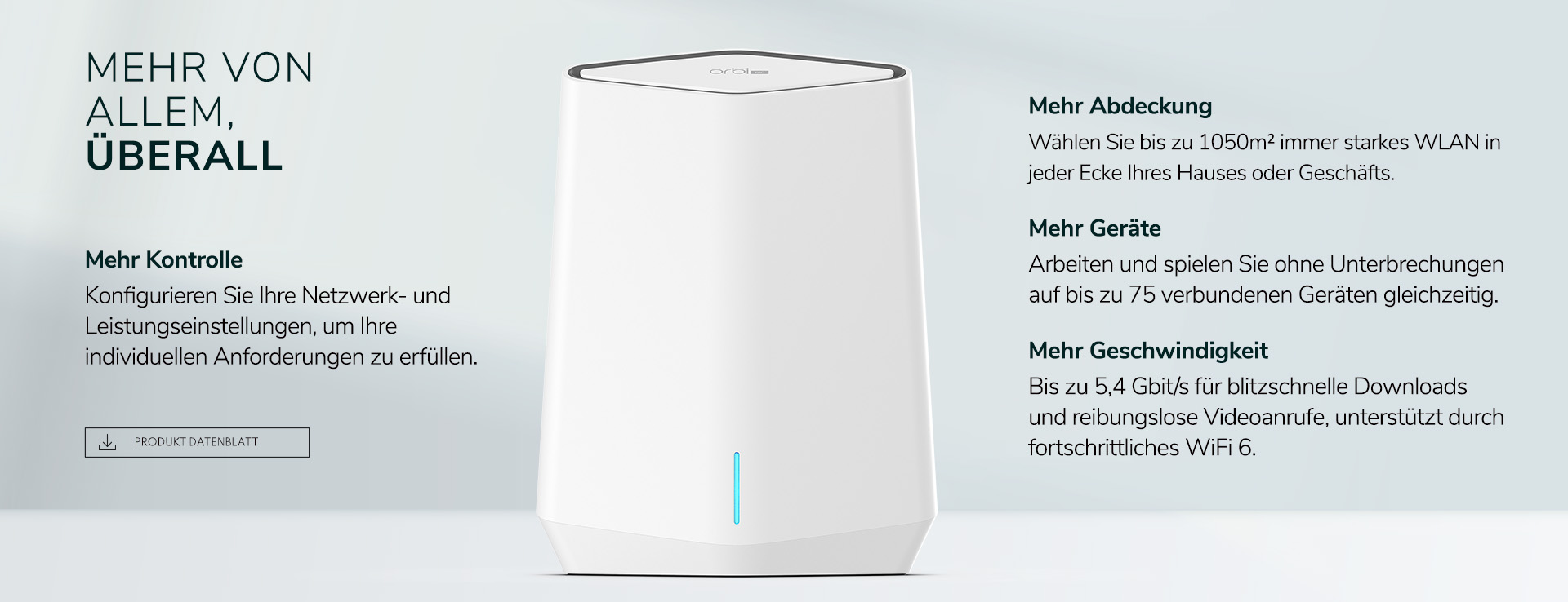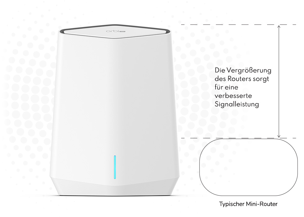 Die einzigartige Form, Höhe und Anordnung der Hochleistungs-Antennen von Orbi Pro liefern längere, stärkere WLAN-Signale und maximale Geschwindigkeit in jeder Ecke Ihres Hauses oder Geschäfts.