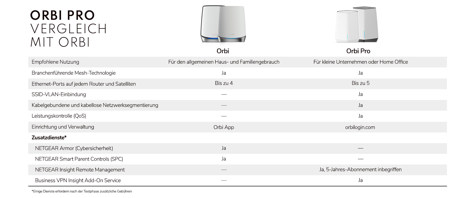 *30-Tage-Testversion beim Kauf eines Orbi Pro inbegriffen. In der Hauptniederlassung ist ein Orbi Pro Router und in jeder Zweigstelle oder im Home Office ein zusätzlicher Orbi Pro Router erforderlich.