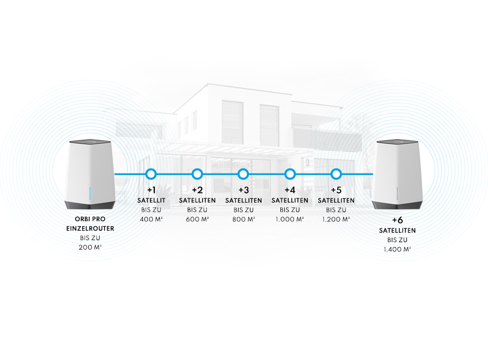 Bis zu 400m² Abdeckung mit dem neuesten, ultimativen Business-Grade-WLAN. Das Orbi Pro-WiFi 6-Tri-Band-AX6000-WLAN-System bietet eine beispiellose Abdeckung, Geschwindigkeit und Kapazität zur Steigerung der Unternehmensproduktivität.