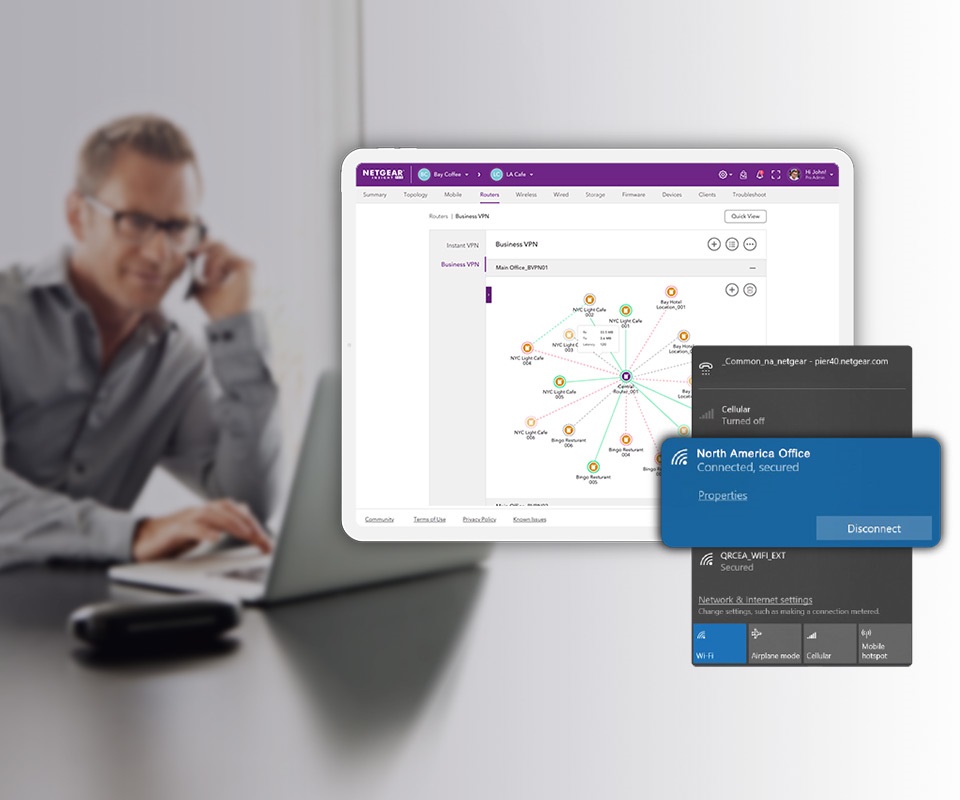 Standort-zu-Standort- und Standort-zu-Standort-VPN zur Verbindung der Hauptniederlassung mit Zweigstellen und Heimbüros über eine gemeinsame SSID mit dem NETGEAR Insight-Add-on-Service, dem Business-VPN*
