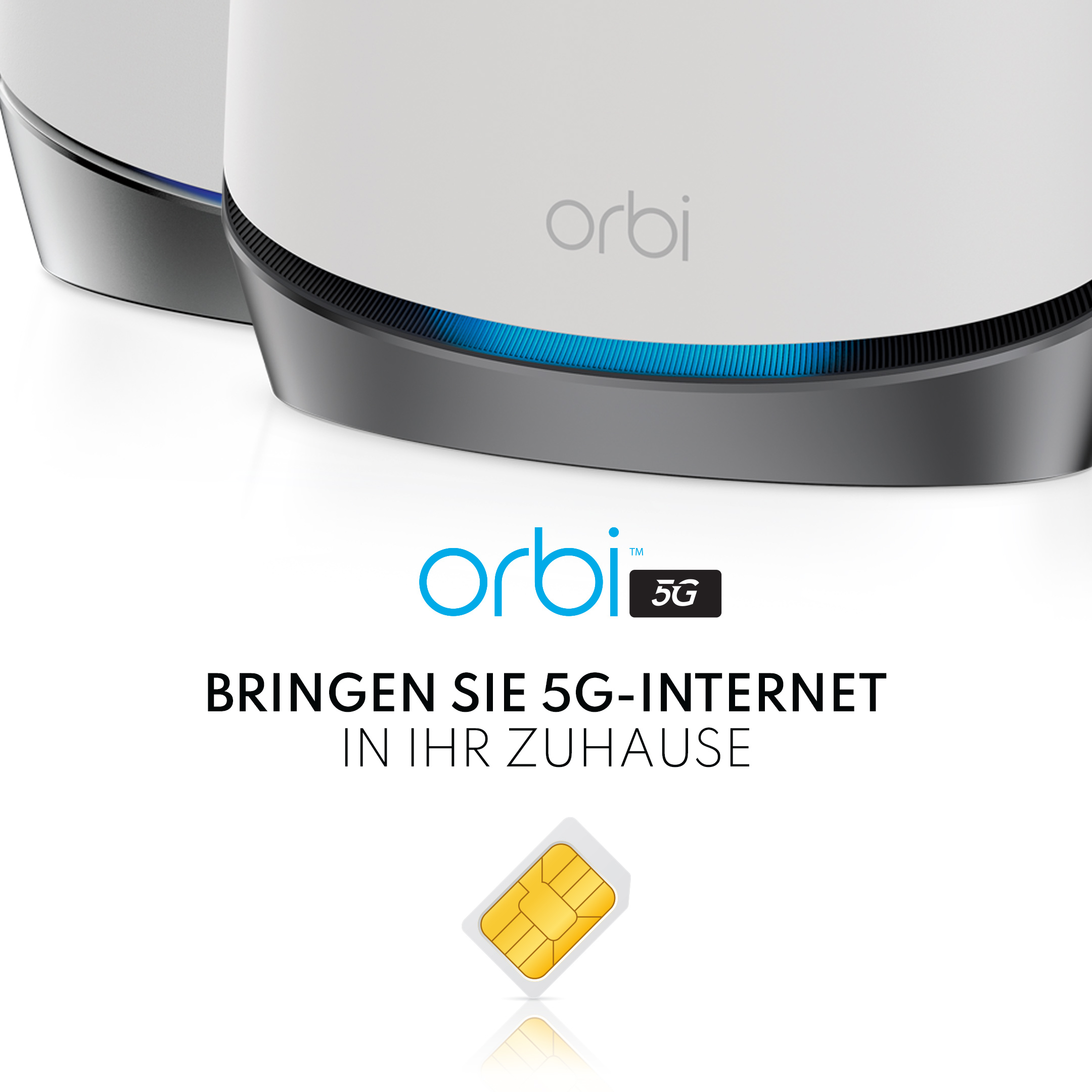 Der Orbi 5G Mesh-System bringt mobile 5G-Technologie in Ihr Zuhause und bietet bis zu 1 Gigabit Internetgeschwindigkeit. Decken Sie bis zu 525m² mit blitzschneller, zuverlässiger WiFi 6-Technologie ab, die Geschwindigkeiten von bis zu 4,2 Gbit/s für bis zu 40 Geräte bietet. Streamen, surfen und arbeiten Sie ununterbrochen in Ihrem ganzen Haus.