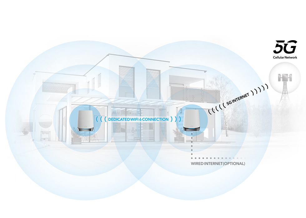 The Orbi 5G mesh system brings mobile 5G technology into your home and delivers up to 1 gigabit internet speed. Cover up to 350 m2 with blazing-fast, reliable WiFi 6 technology providing speeds of up to 4.2Gbps for up to 40 devices. Stream, browse and work uninterrupted throughout your home.