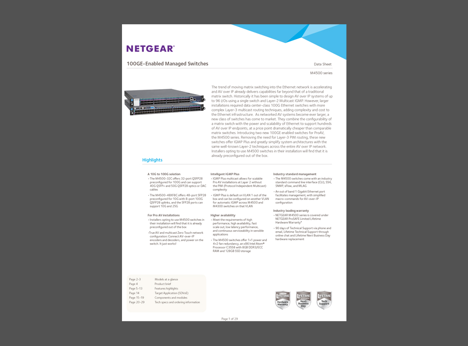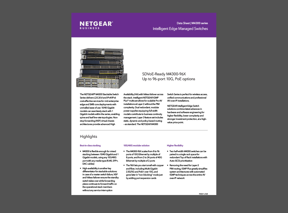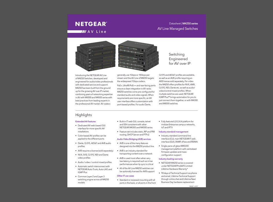 Conmutadores AV sobre IP certificados por Avnu para AVB: Línea AV de NETGEAR serie M4250