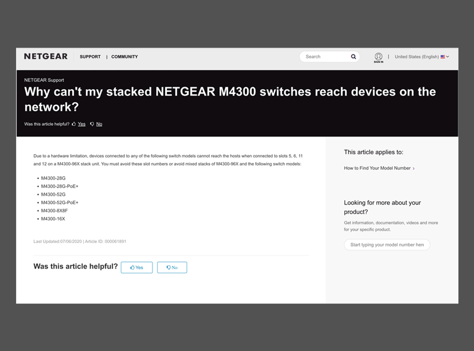 ¿Por qué mi switch NETGEAR M4300 apilado no puede llegar a los dispositivos de la red?