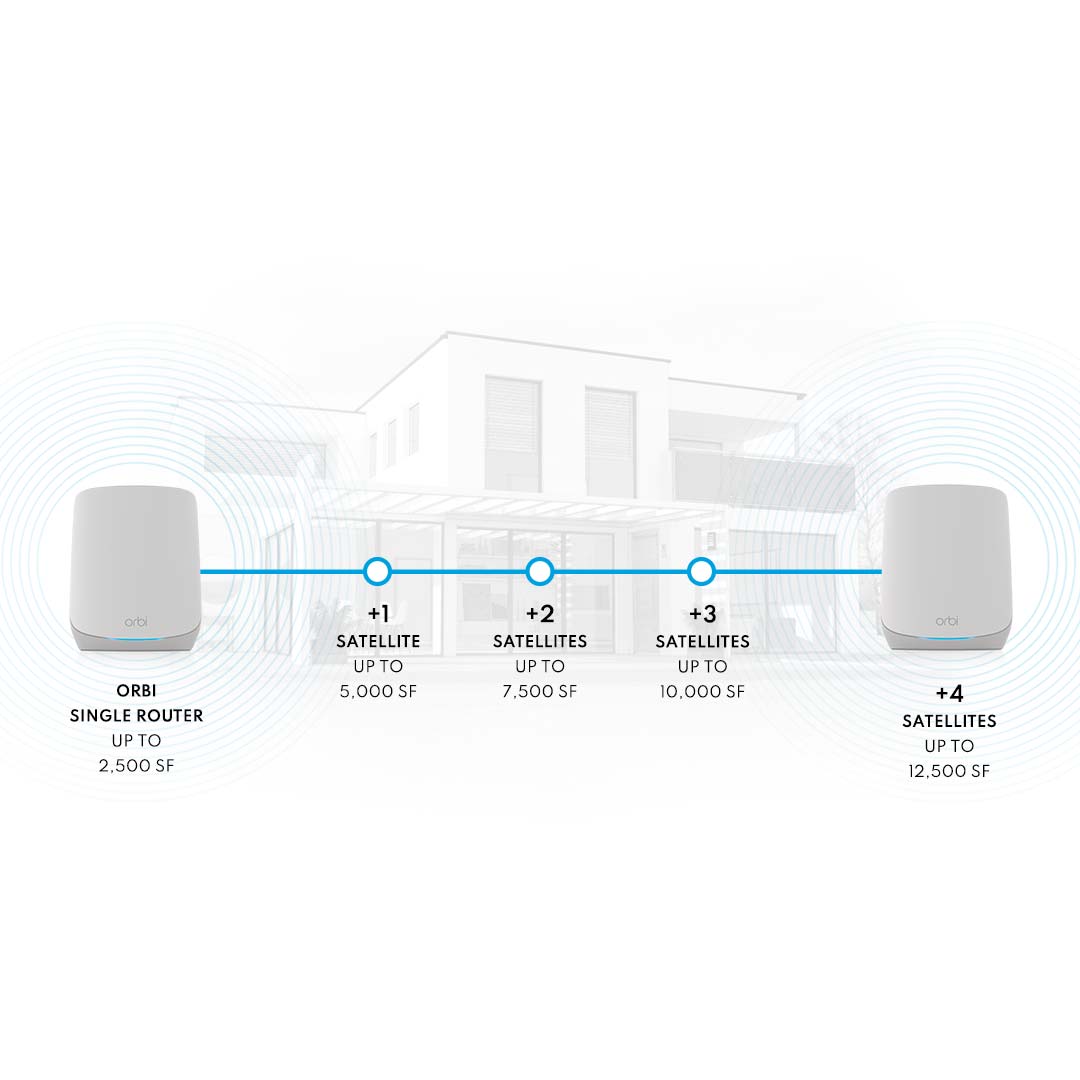 Añade fácilmente 175 metros cuadrados de cobertura potente a tu sistema Orbi serie 760. A medida que cambien sus necesidades, aumente su cobertura y no tenga limitaciones con un WiFi potente, fiable y rápido en todas las habitaciones de su casa.