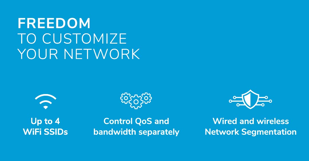 Isolez en toute sécurité votre réseau administratif et les des données critiques et définissez les réseaux auxquels vos invités et vos employés peuvent accéder, tout en optimisant les performances WiFi pour répondre aux besoins de tous.
