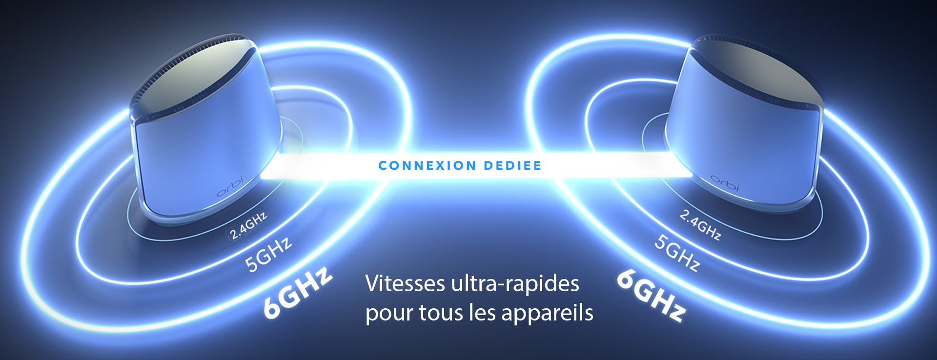 La technologie Quad-Band exclusive est dotée d'une bande WiFi dédiée qui connecte la base Orbi et les satellites, garantissant ainsi des débits Internet ultra-rapides dans toute la maison.