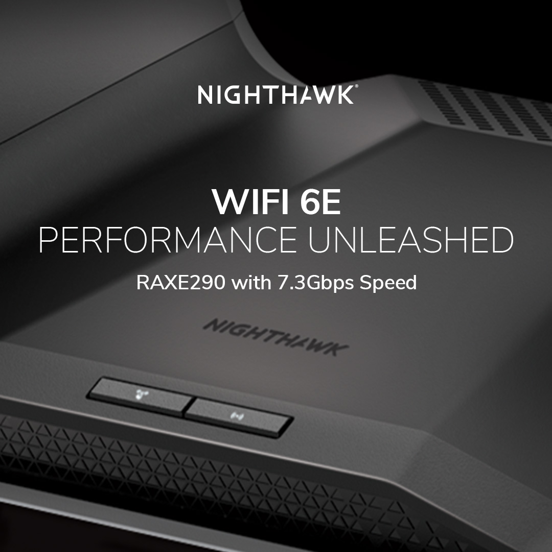• Nighthawk® AXE7300 Tri-Band WiFi 6E Router (RAXE290)