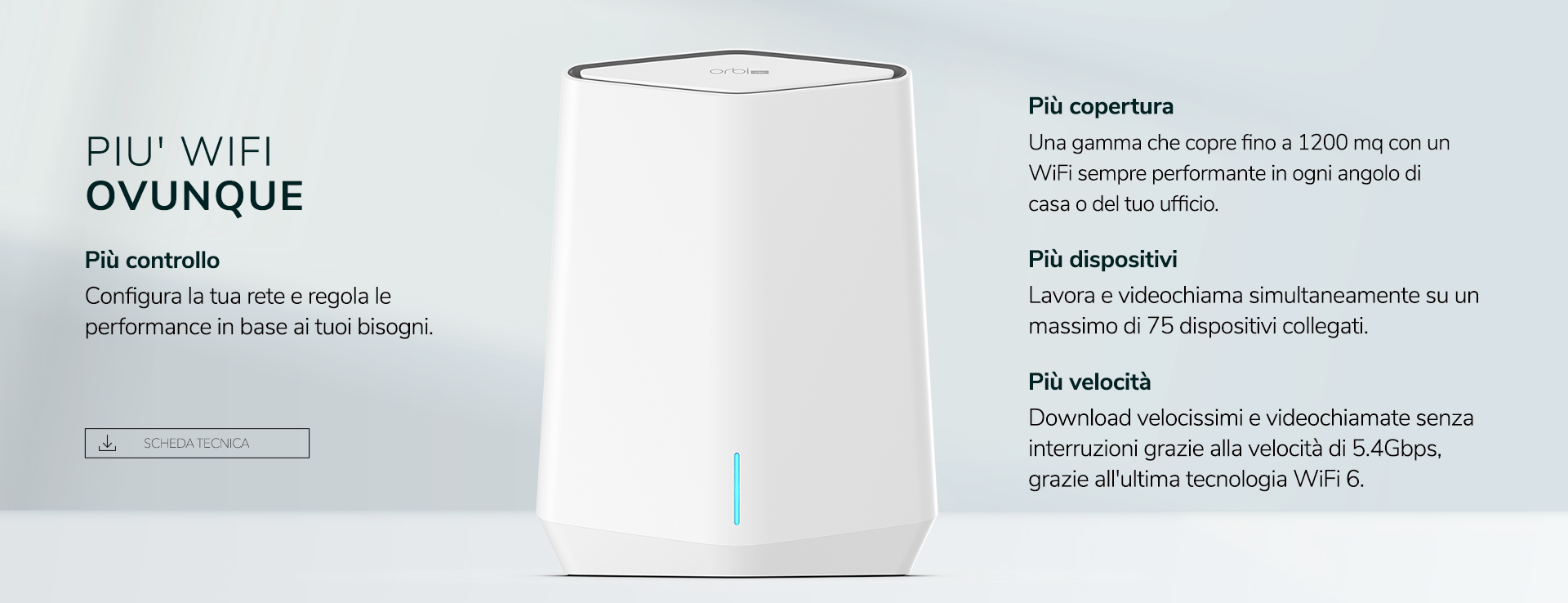 *prova di 30 giorni inclusa con l'acquisto di un Orbi Pro. Nella sede principale è richiesto un router Orbi Pro e un router Orbi Pro aggiuntivo in ogni filiale o ufficio domestico.