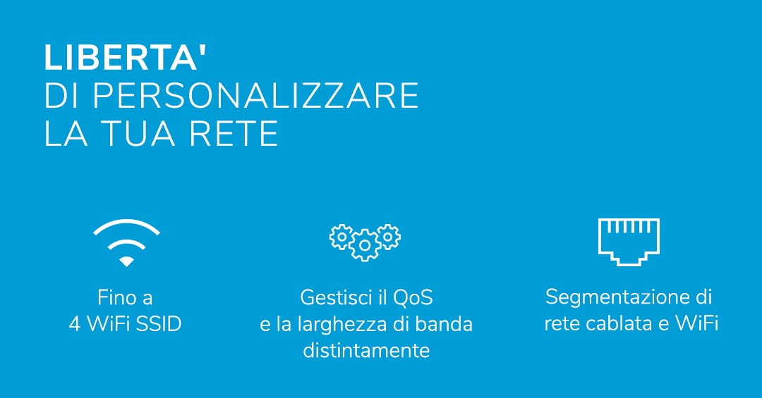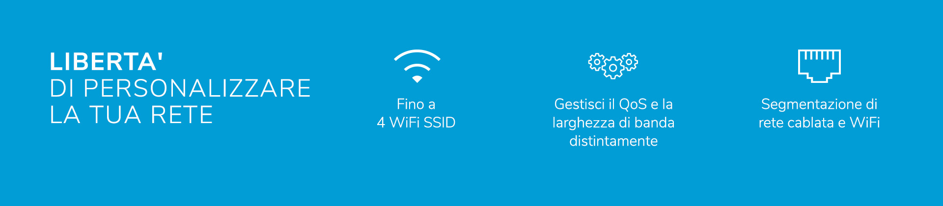 - Configurazione VLAN flessibile su tutte e quattro (4) le reti WiFi SSID.