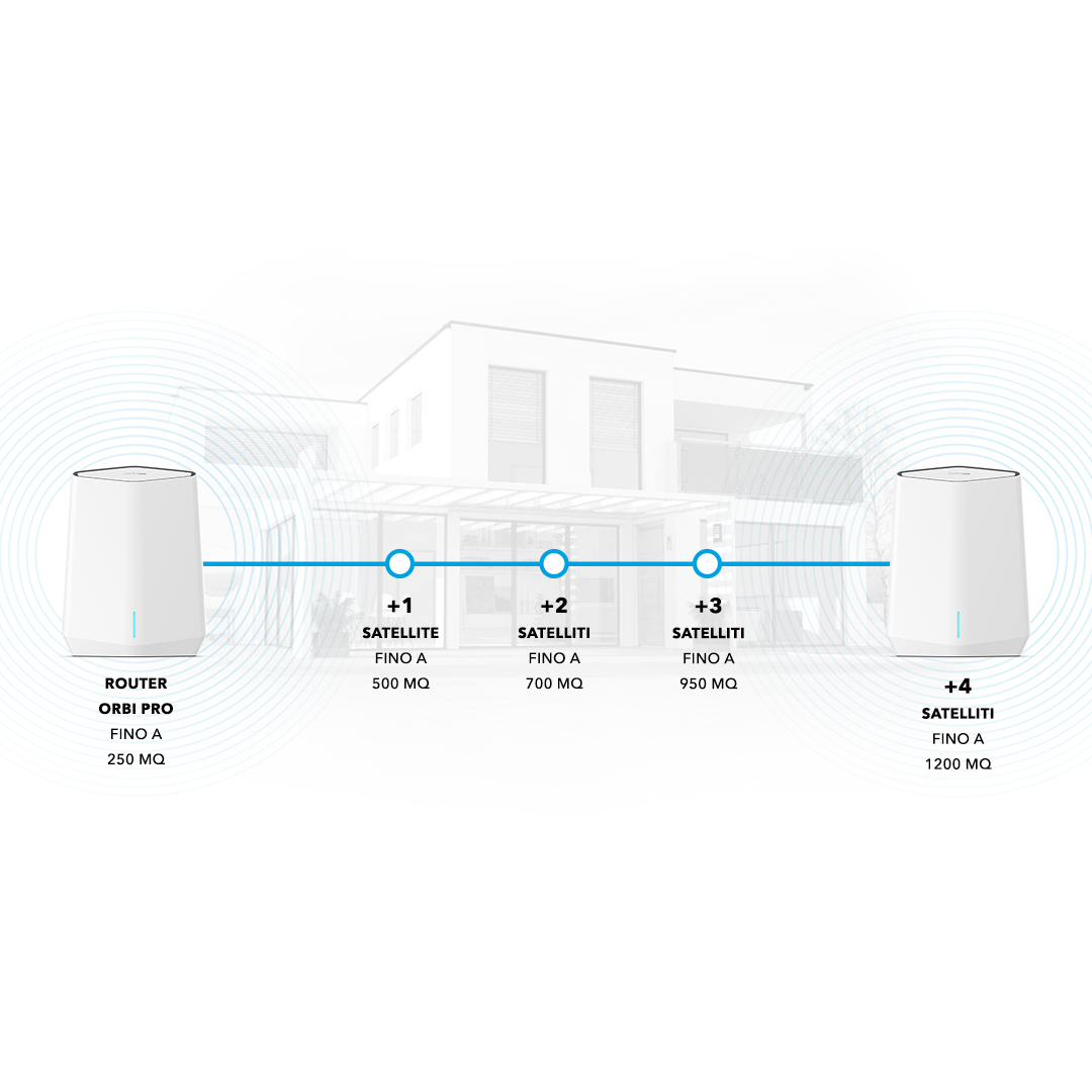 *prova di 30 giorni inclusa con l'acquisto di un Orbi Pro. Nella sede principale è richiesto un router Orbi Pro e un router Orbi Pro aggiuntivo in ogni filiale o ufficio domestico.