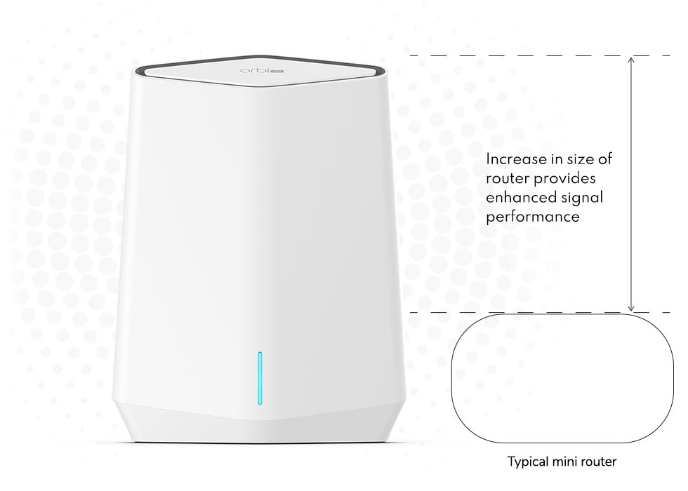 La forma, l'altezza e la predisposizione delle antenne ad alta potenza di Orbi Pro offrono un segnale WiFi più esteso e potente e la massima velocità in ogni angolo del tuo della tua casa e ufficio.