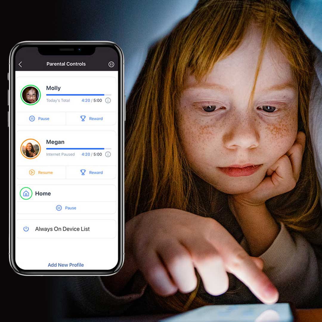 - NETGEAR Smart Parental Control™: Consente di gestire facilmente il tempo online dei tuoi figli tramite i dispositivi connessi