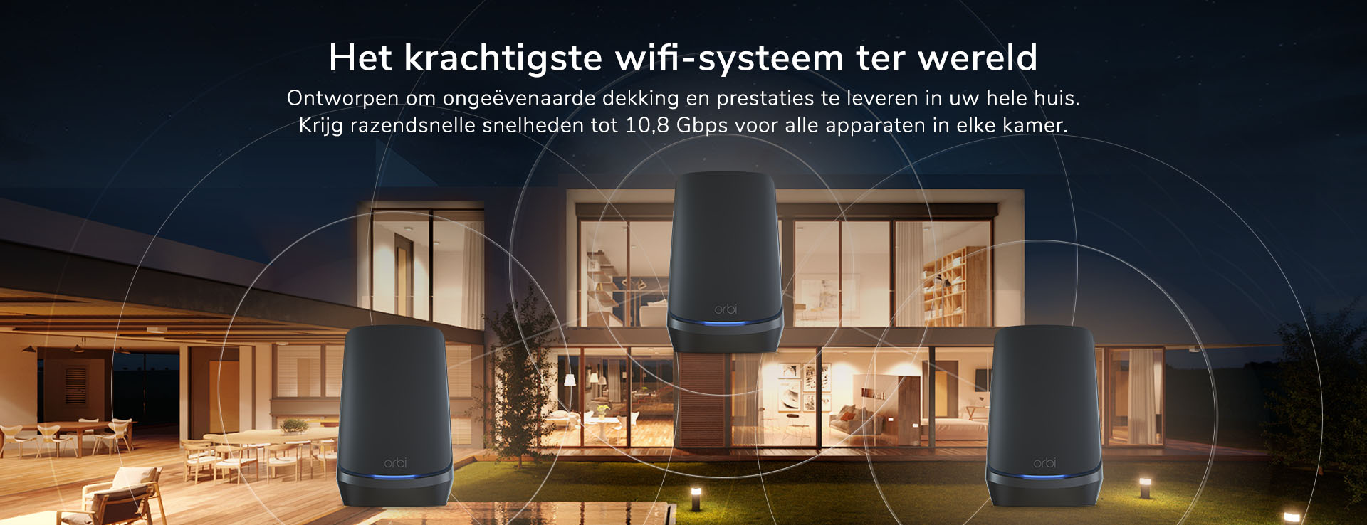 • 's Werelds krachtigste WiFi-systeem voor thuisgebruik met snelheden tot 10,8 Gbps† WiFi en dekking tot 600m², inclusief voor- en achtertuinen